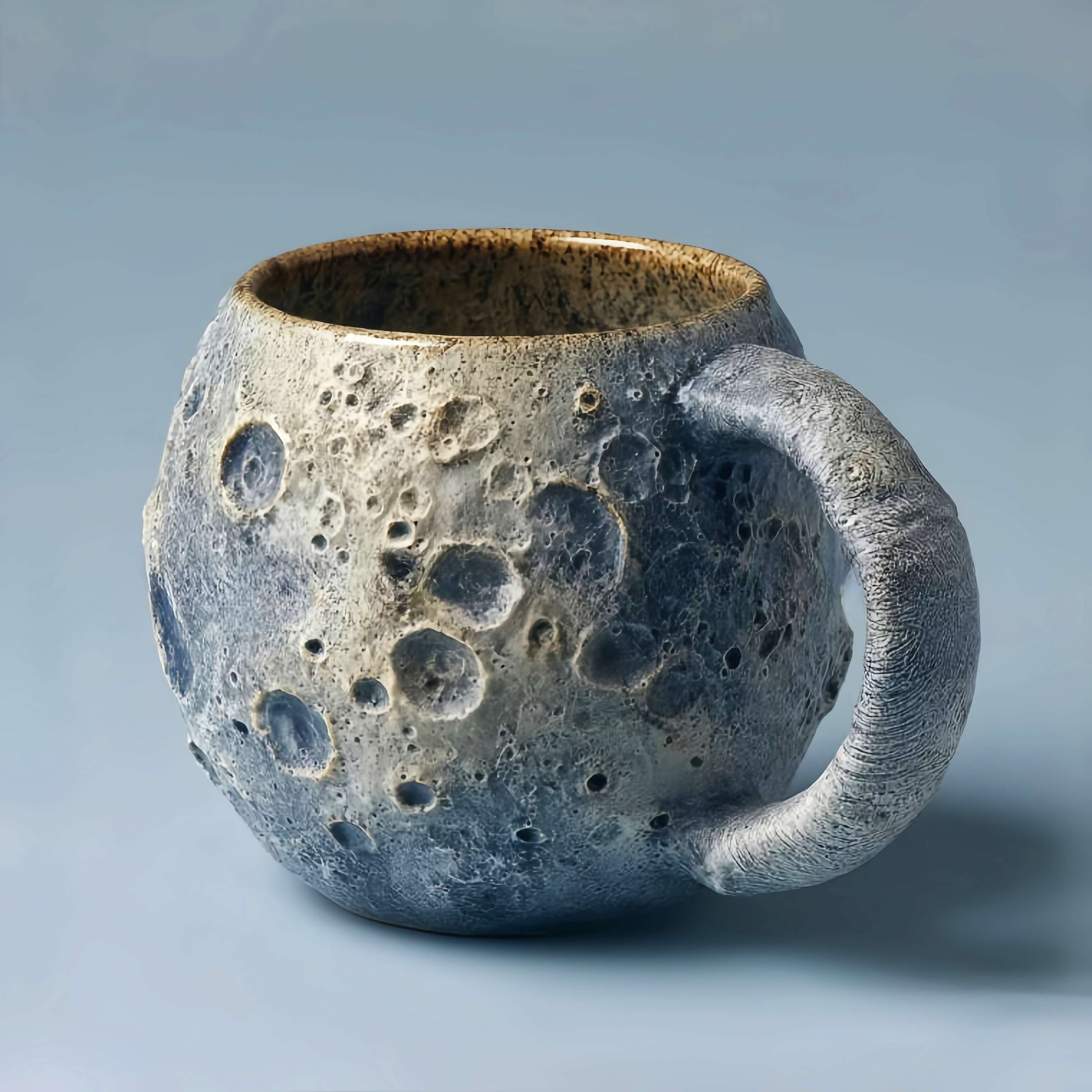🌟 Moon Mug: Authentic crater texture with matte gray glaze