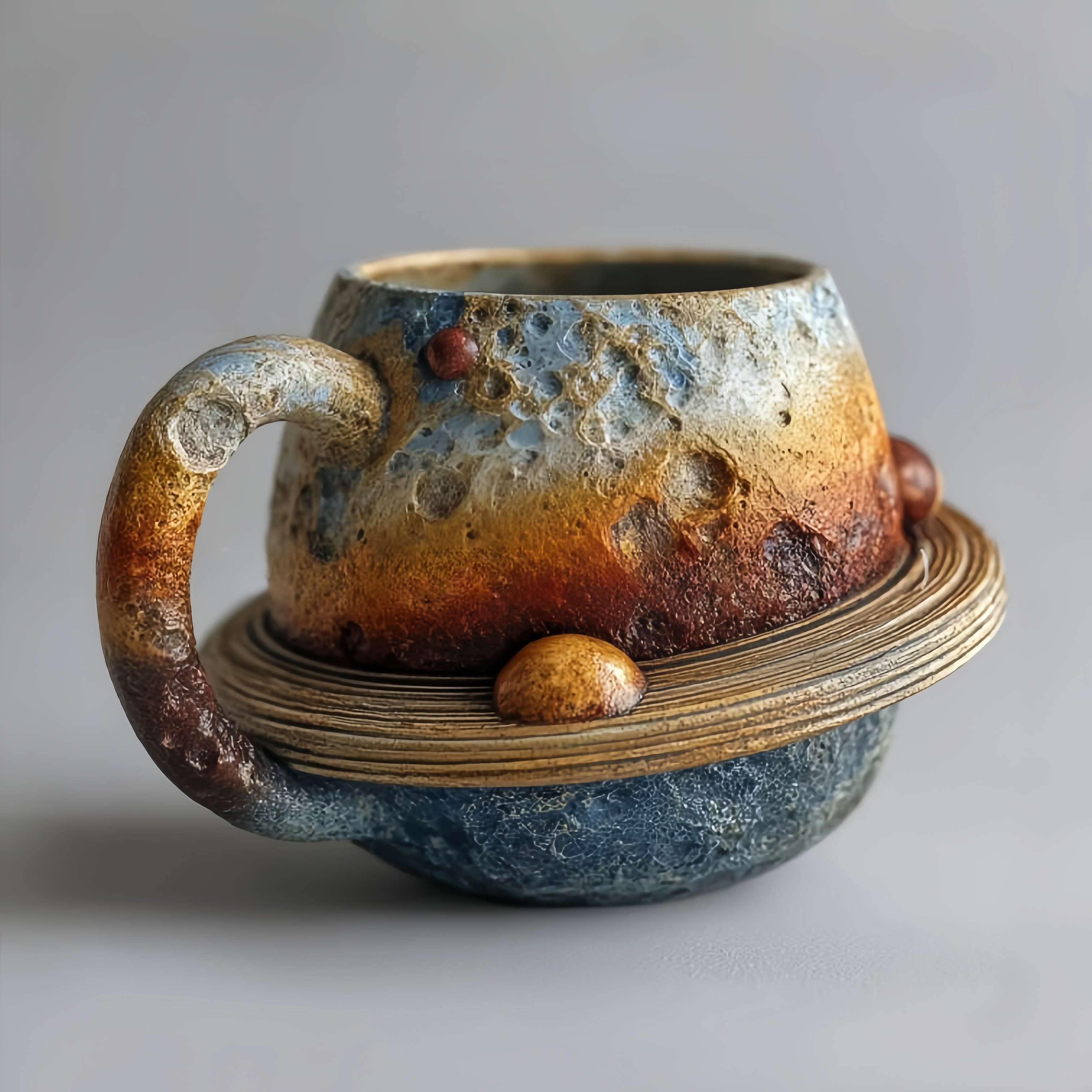 🌟 Saturn Mug: Distinctive ring handle design with golden accents